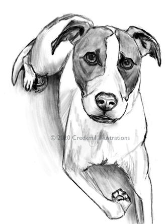 A sketch-style, black & white digital drawing based on a photo of your pet.